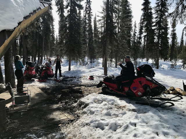 A couple of groups of snowmachiners drove by, the second group stopping to chat with us. It was nice to see them, but they had paddle tracks and the snow was soft, so they definitely chewed up the trail a bit. We hoped the temperature would drop below freezing again overnight otherwise it would be a slogfest on the way out.