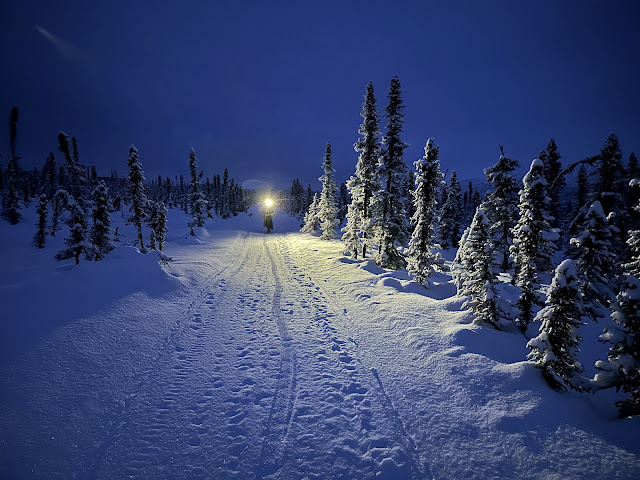 I knew I was moving slow, but was I really that slow? I tried to pick up my speed, but the headlamp was still catching me. As it got closer, I finally heard barking and realized it was a dog team, not Beat. Whew!