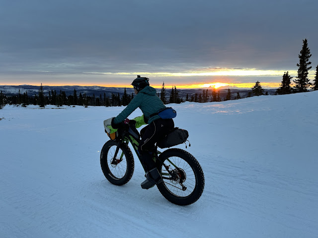 But once on the trail, I can relax, right? Well, not always, especially in winter. Fatbiking with a loaded bike is hard work. Even with good trails. But if the trails are bad or the light is flat, it can be tricky and take a lot of concentration. And you have to think about not getting too sweaty on the climbs and to layer up quickly for the long descents. Even if you do everything right, you will probably get cold. Your hands and feet are the first things to go numb. Then it’s stressful and painful warming them up again. Make a mistake and you could suffer frostbite or worse. It’s harder to relax dealing with all that.